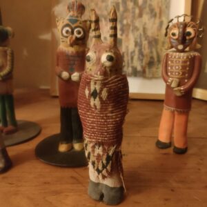 Autodidacte, Dominique Aubert a néanmoins suivi de nombreux ateliers et stages pour maîtriser toutes les techniques qu’elle aborde et trouve souvent son inspiration dans l’art ethnique, africain, japonais ou amérindien à l’image de ses Kachinas.